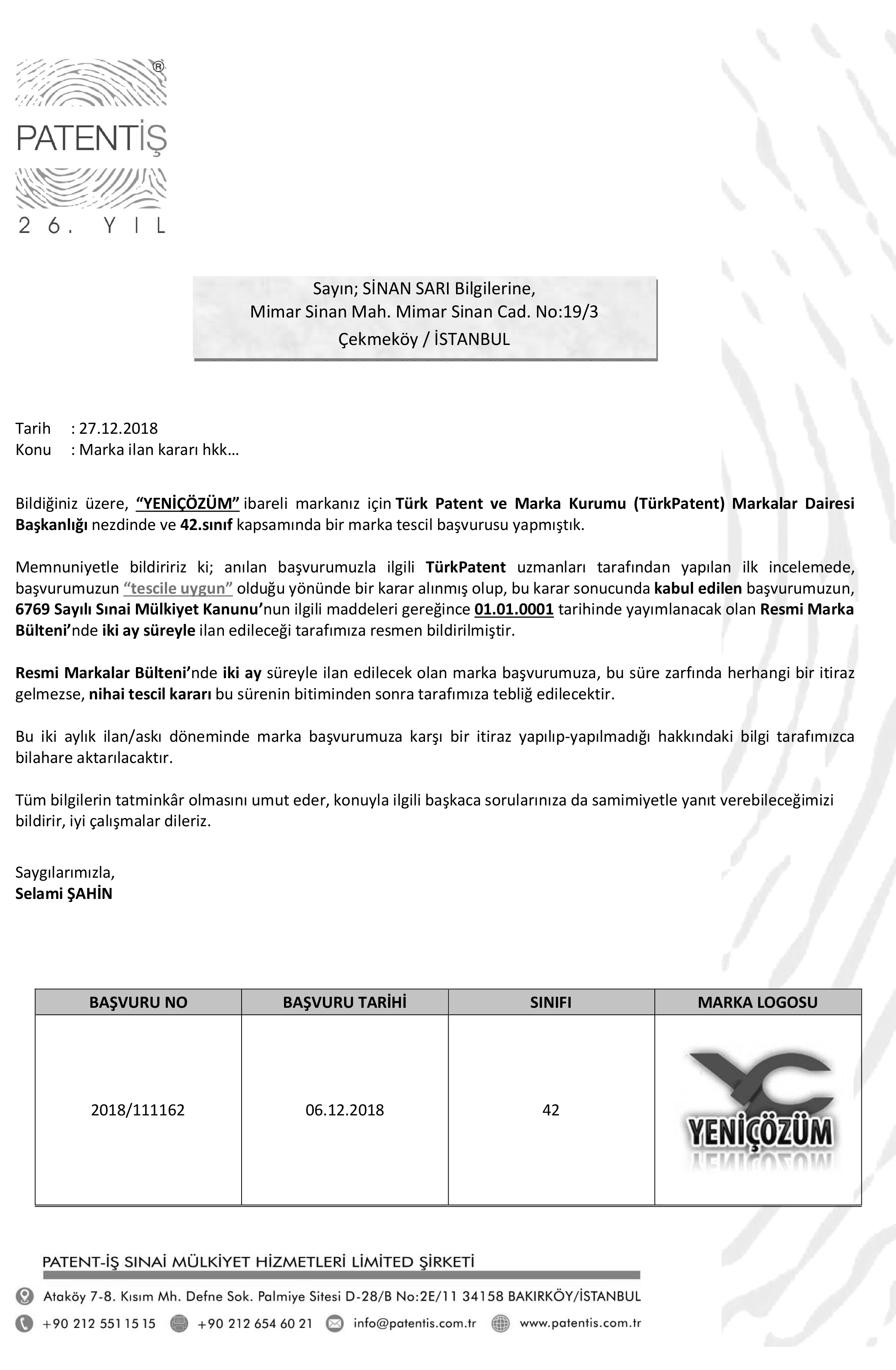 Marka Tescil Kararı